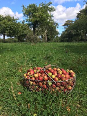 But back to the main purpose of our visit. During our stay we have harvested 2,14 tonnes of apples and did the first passing of four from five orchards. In this case we have not pressed the apples but gave them to a friend as an exchange for his help later on in the season with the apples which are optimal for "cidre bouché"/cider for bottling. Before leaving we have prepared the base for the second harvesting trip, which will start on 20-21/10. Mission accomplished.